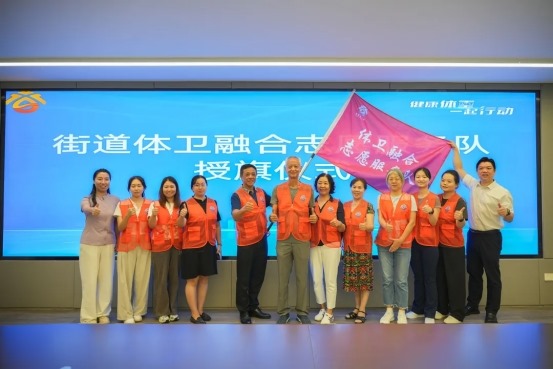 侨香社区党委书记尹靓现场宣读《“健康体重 一起行动”倡议书》,号召全体居民积极参与体重管理,践行健康生活方式。香蜜湖街道党工委副书记、办事处主任温现青为体卫融合志愿服务队授旗,志愿服务队将成为社区健康传播与居民服务的重要力量。